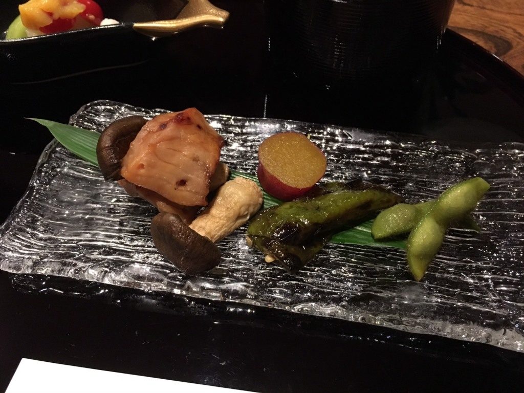 前菜・向付・酢肴・焼物・煮物・蒸物・御飯と順にいただきました。
