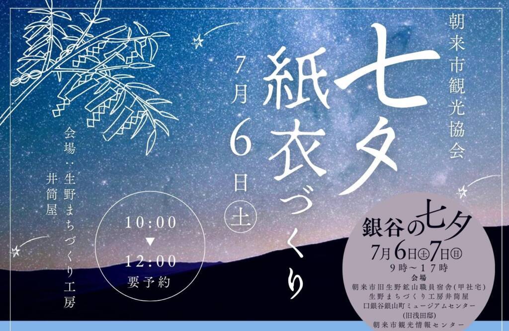 今回は7/6(土)7日(日)に生野町で開催される「銀谷の七夕」のご案内です。