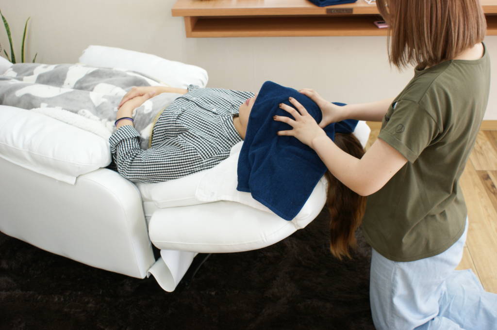施術コーナーを覗かせてもらったのですが、マッサージチェアもとてもオシャレでした~!(^^)!ここなら、落ち着いた雰囲気の中で『ドライヘッドスパ』が受けれそうですね~♪リラクゼーション効果もバッチリ♪