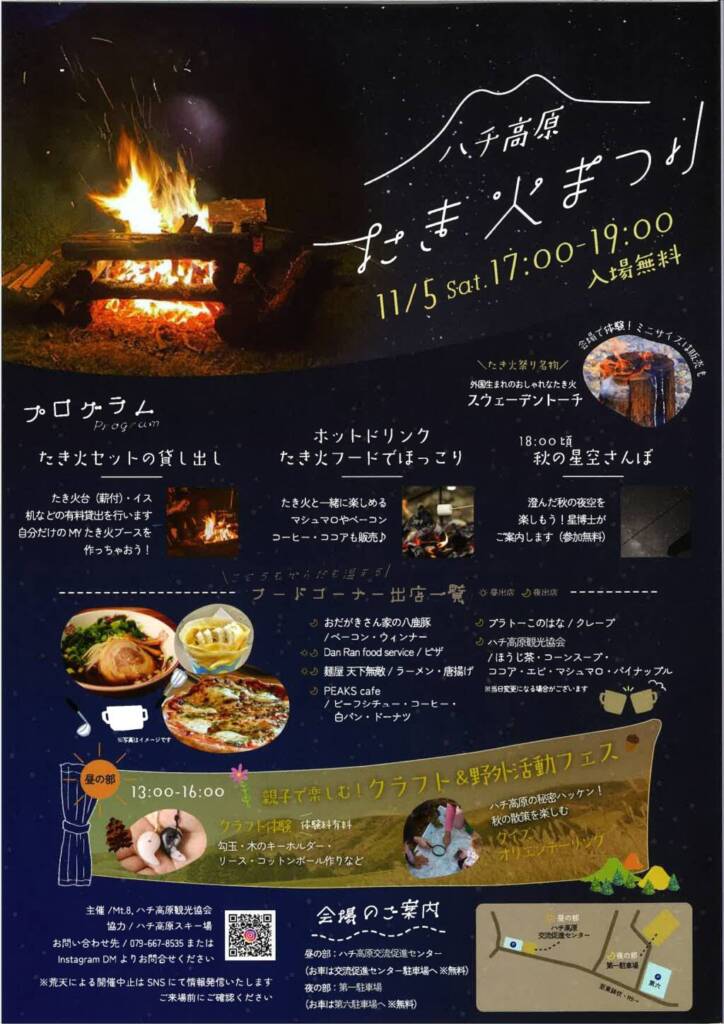 そんな秋深まるハチ高原をみなさんで楽しんでみませんか😆キャンプファイヤーやたき火を囲んで暖まりましょう。温かいドリンクとフードも提供しますので炎と共に秋を満喫。ぐっと冷え込むので暖かい格好でお越しください。