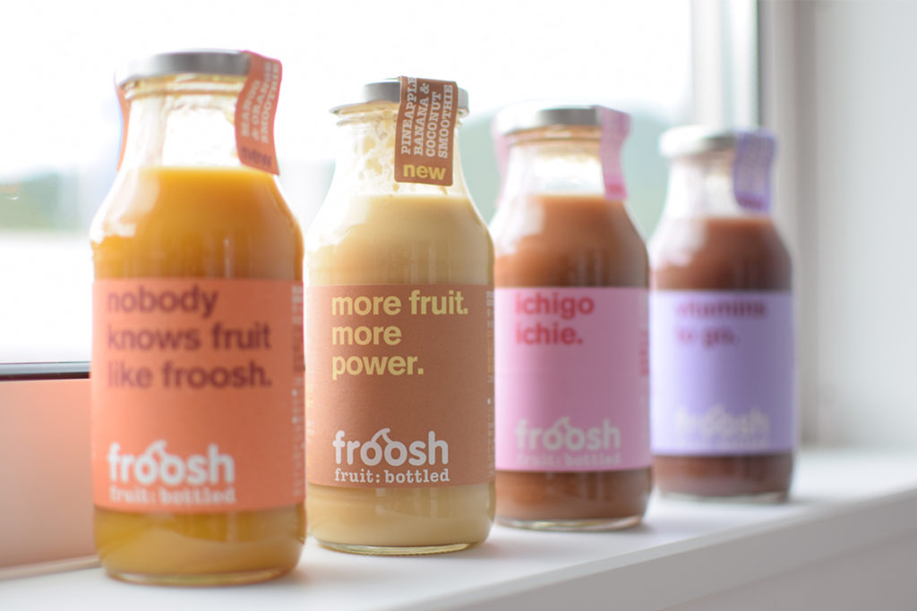 froosh(フルーシュ)とは、フルーツそのままの食感を味わえる フルーツスムージーのこと。砂糖や保存料、着色料などの添加物を一切使用せず、100%フルーツや野菜のみで作られています。また、濃縮還元ではないため、天然の植物栄養素、ビタミン、ミネラル、食物繊維が豊富に含まれており、美容にも健康にもぴったりの、素材そのものの味が濃縮されたスムージー!!