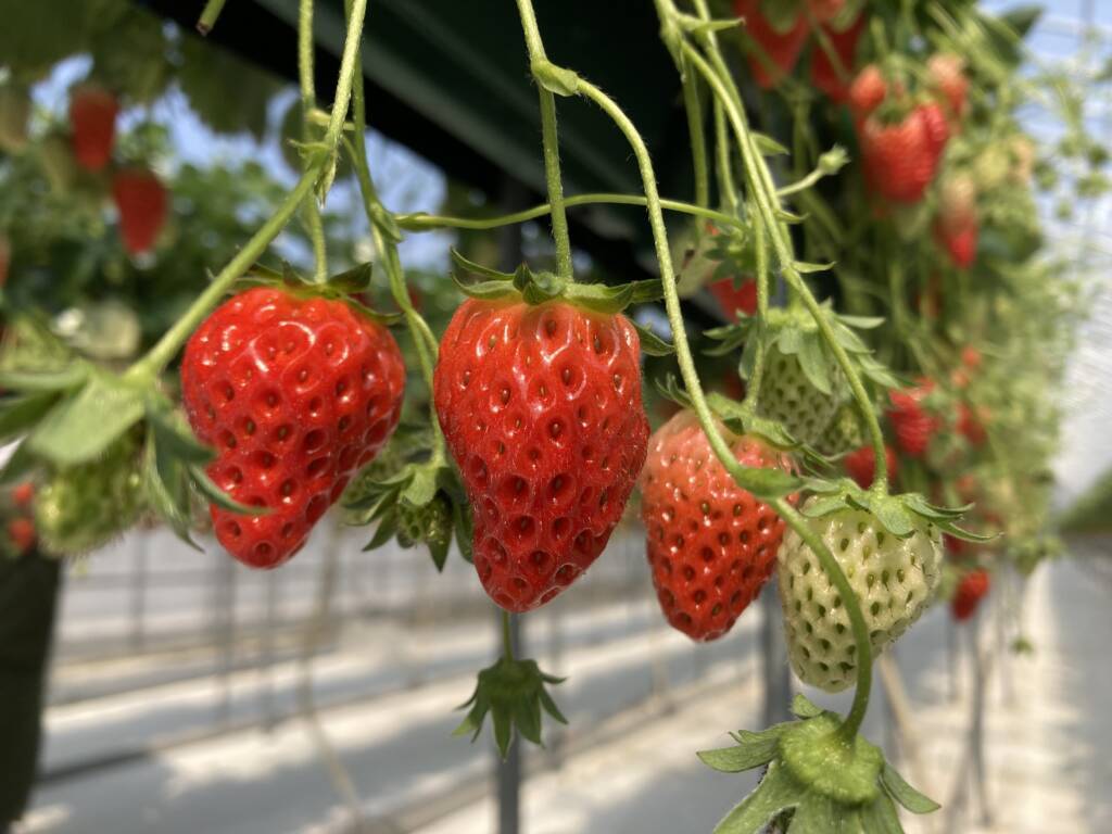 高設栽培をされているので立ったまま楽に摘み取りができて