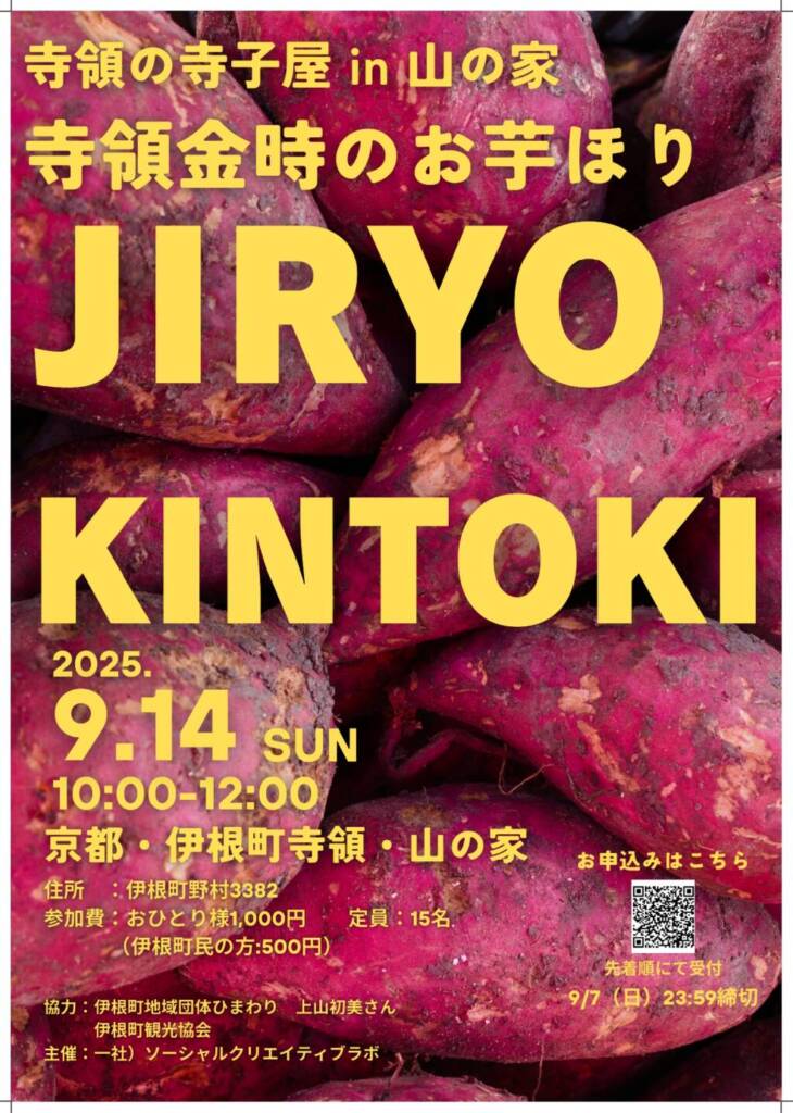 記念すべき第1回は、9月14日(日)10:00〜12:00に行われる《寺領金時のお芋ほり》。
