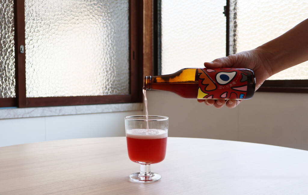 赤鬼を思わせる鮮やかな色合いと、ほんのり酒粕が香る爽やかなペールエールに仕上がっています。食事にもスイーツにも合う、飲みやすい味わいが特徴です。また、童話『泣いた赤鬼』の物語――