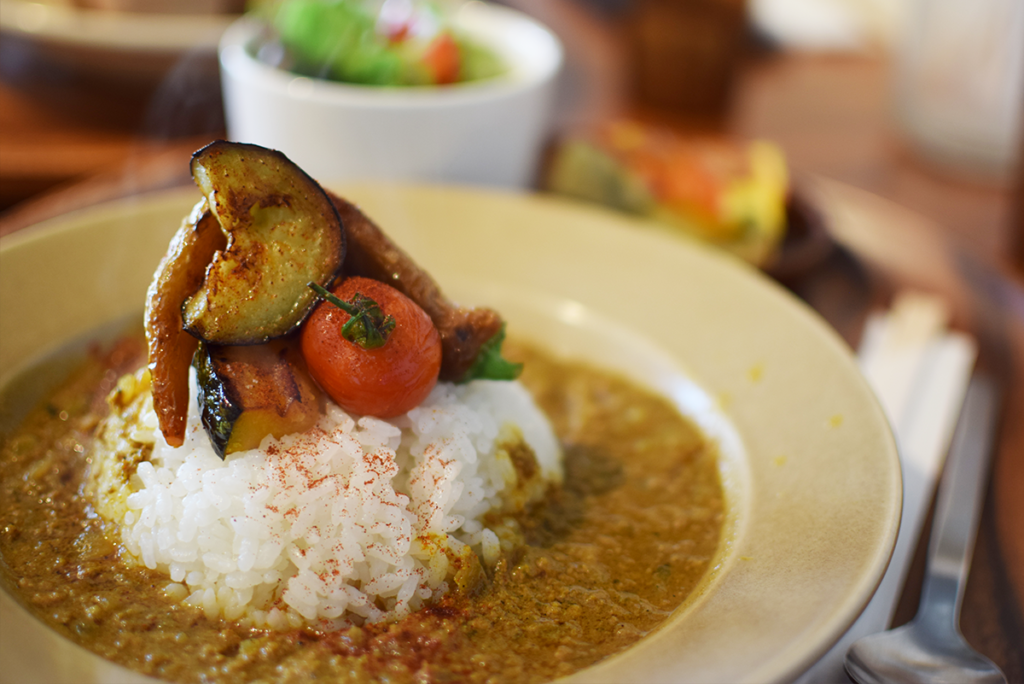 夏野菜が盛り付けられたスパイシーキーマカレー♪数種類のスパイスがブレンドされているそうで、カレー欲を満たしてくれました^^