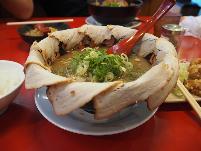 ・希望軒とんこつラーメン(チャーシュー大盛)&唐揚げセットを注文!