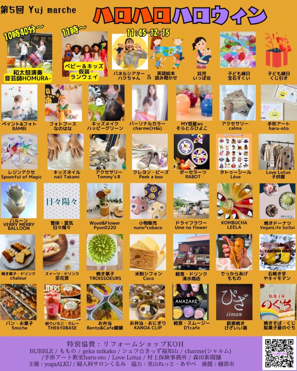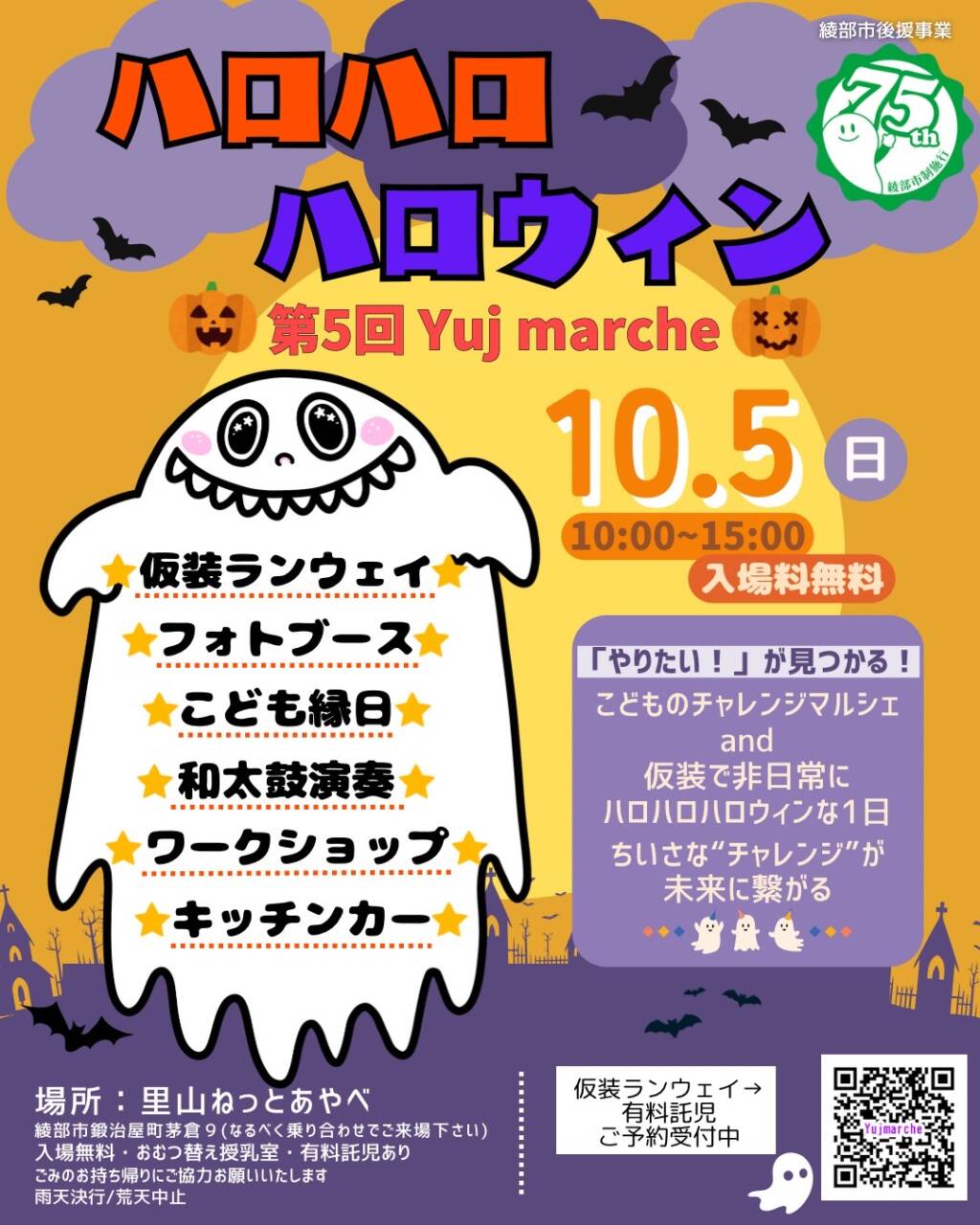 綾部・福知山で開催してきました「Yuj marche」が、第5回目の今年は“ハロハロハロウィン”として開催されます。