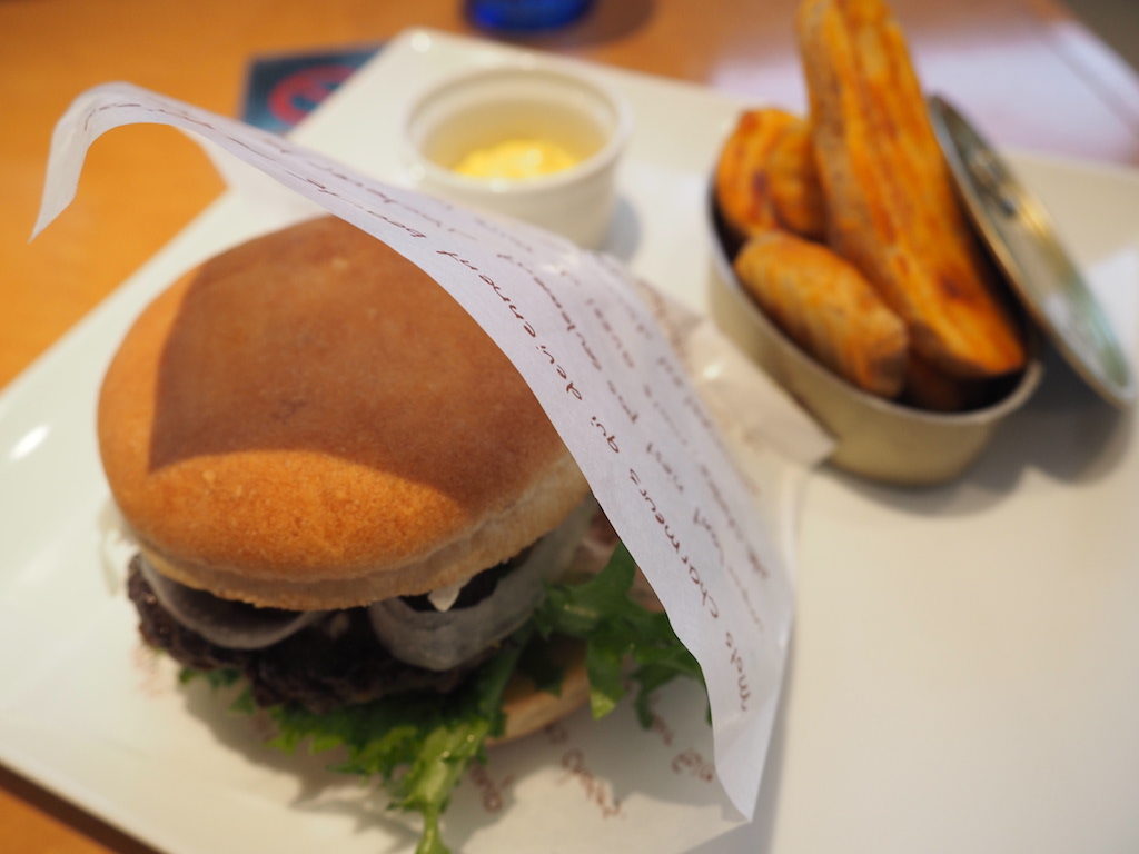 ピザが食べたいな〜と思って伺ったんですが、メニュー表を見ていると期間限定の但馬牛100%のハンバーガーが気になって、そちらをオーダー!