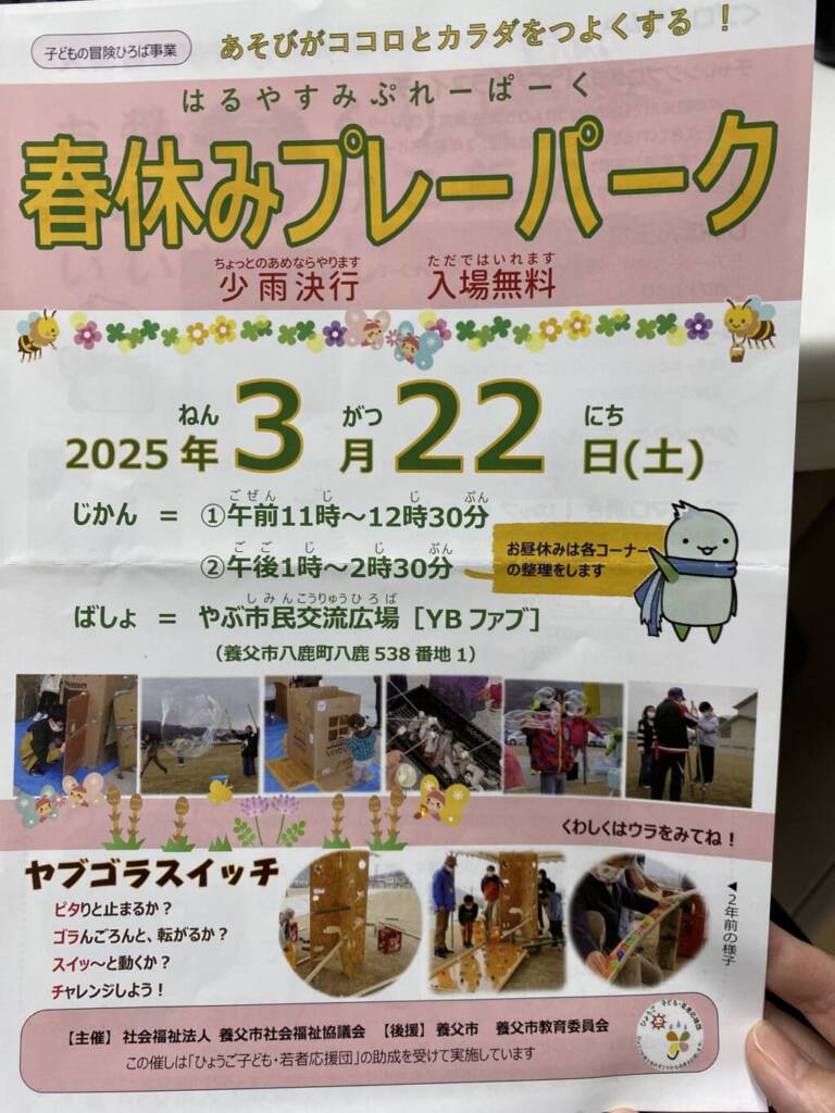 今回は養父市で開催される「春休みプレパーク」についてご紹介します!