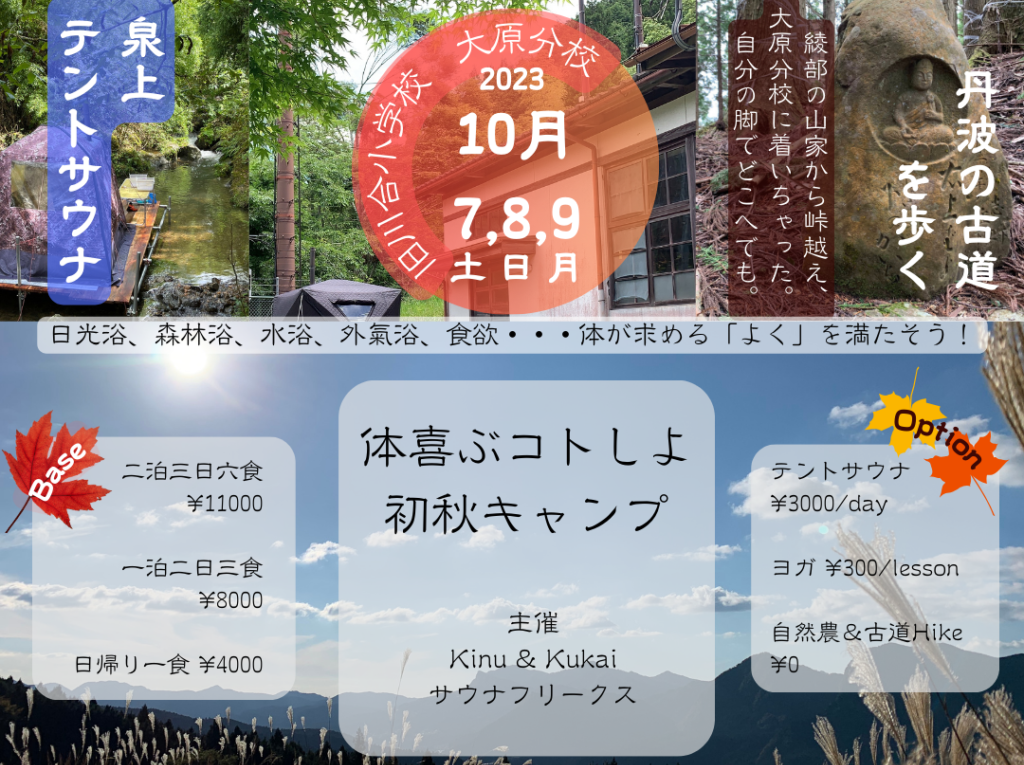 | ホームページ・申し込み | https://yoko57kobayashi.wixsite.com/kinu—kukai/event-details/karadayorokobukotoshiyo-shoshukyanpu |