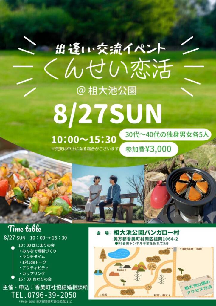 今年のイベントは、香美町村岡区柤岡で「くんせい恋活@柤大池公園」と題した出逢い・交流イベントです♪