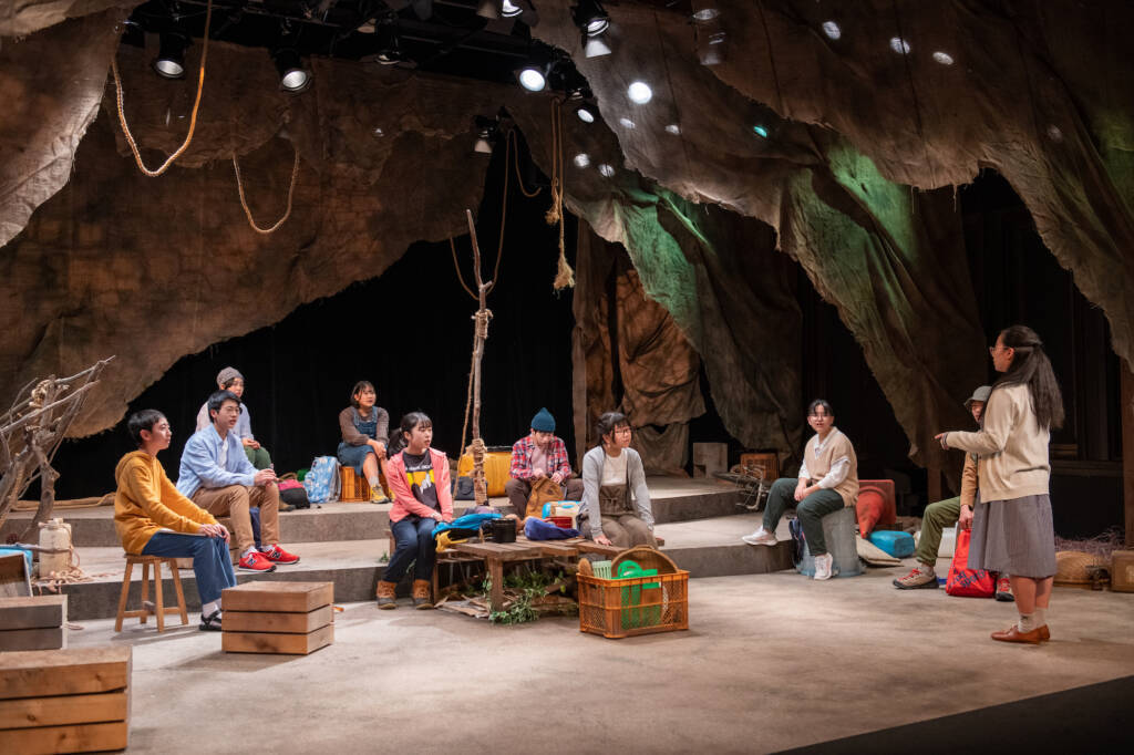 現在小学4年生から高校3年生まで40名が活動しています。月に1〜2回、小学生の部(20名)と、中高生の部(20名)に分かれて、それぞれ演劇のワークショップや本格的な創作に取り組んでいます。『十五少年・少女漂流記』公演は、中高生の部から17名が出演し、一部ダブルキャストで上演します。